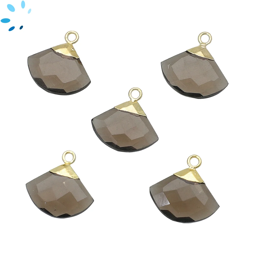 Smoky Quartz Fan Charm Pendant 16x13 - 18x14mm 18k Gold Electroplated - Set of 2