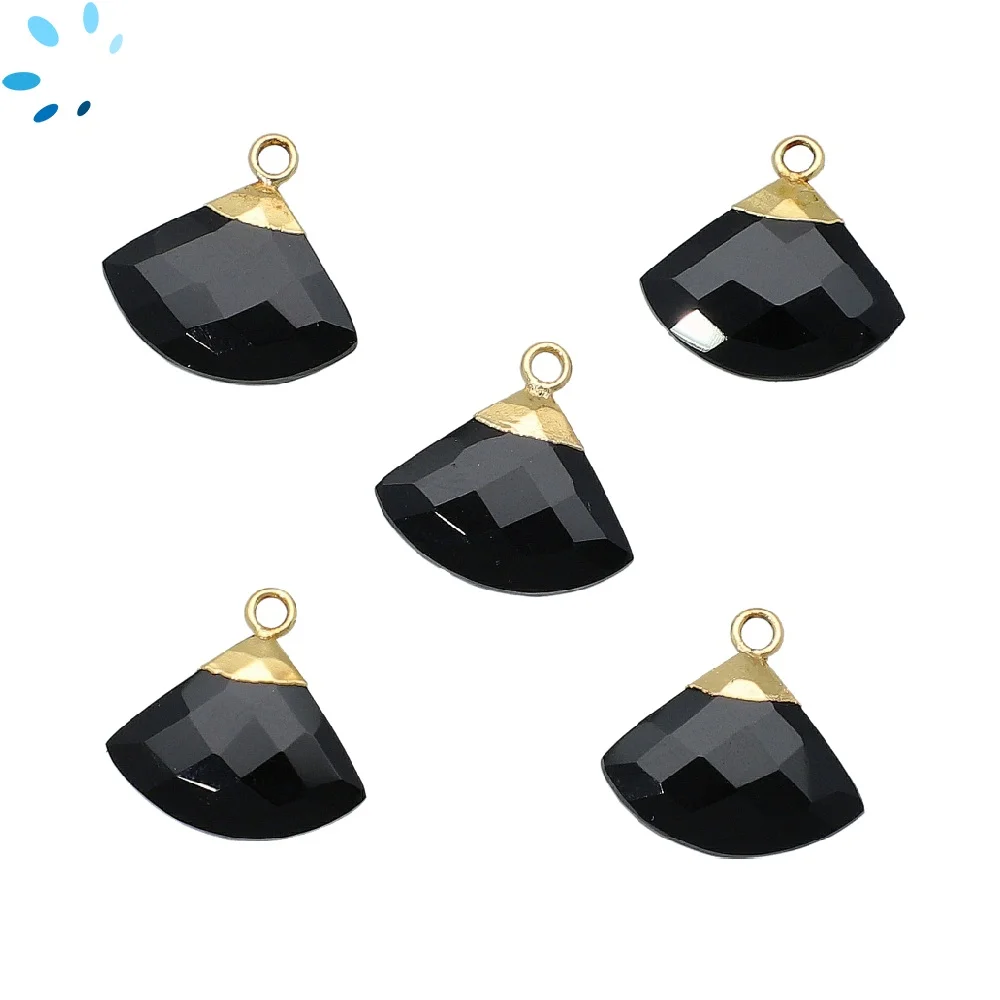 Black Onyx Fan Pendant Charm 16x13 - 18x14mm 18k Gold Electroplated - Set of 2