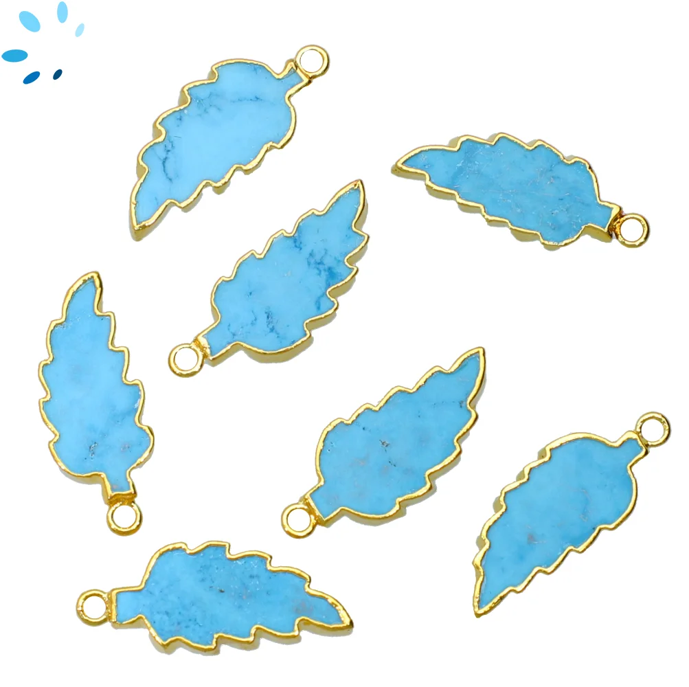 26. Turquoise Color Howlite Leaf Charm Pendant 22x10 - 24x12mm 18k Gold Electroplated - Set of 4