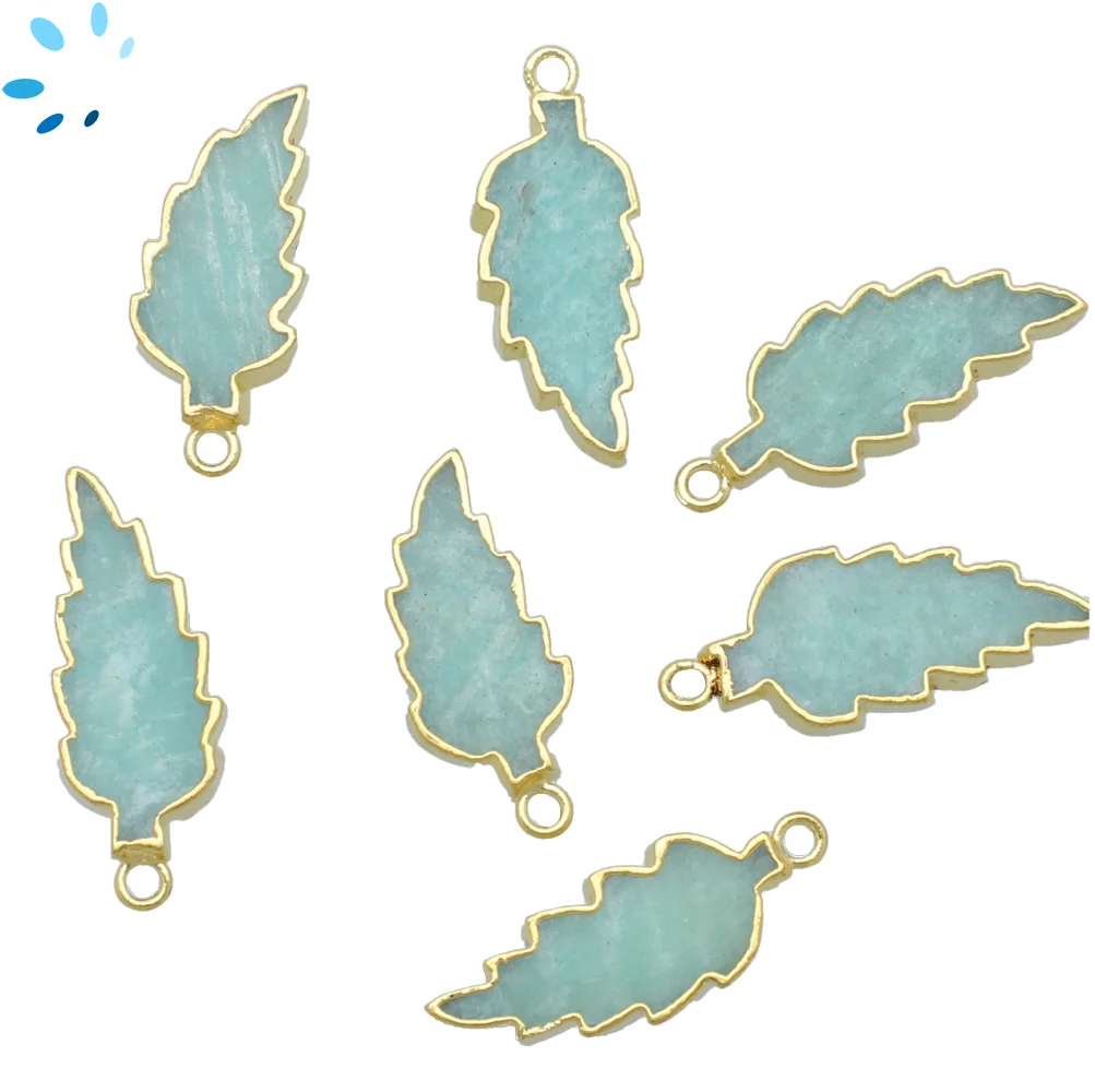 3. Amazonite Leaf Charm Pendant 21x12 - 24x13mm 18k Gold Electroplated - Set of 4