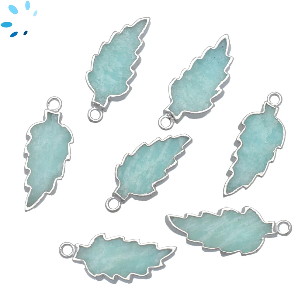4. Amazonite Leaf Pendant Charm 21x12 - 24x13mm Platinum Electroplated - Set of 4