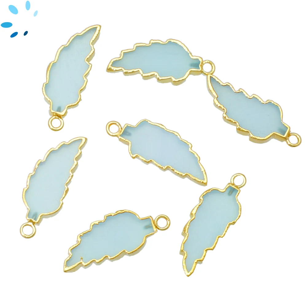 20. Aqua Chalcedony Leaf Charm Pendant 10x8 - 12x9mm 18k Gold Electroplated - Set of 4