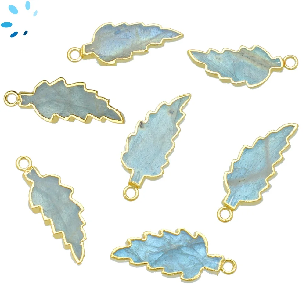 6. Labradorite Leaf Pendant Charm 21x12 - 24x13mm 18k Gold Electroplated - Set of 4