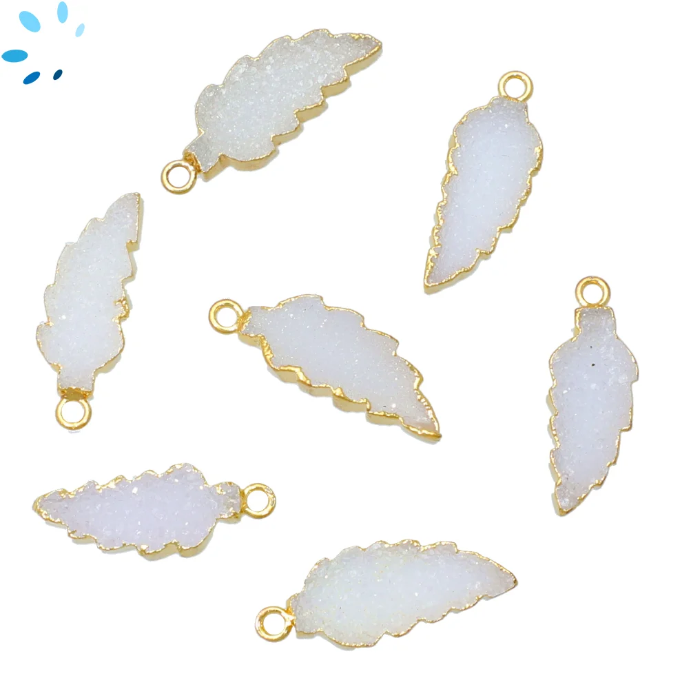 8. White Druzy Leaf Pendant Charm 21x12 - 24x13mm 18k Gold Electroplated - Set of 4