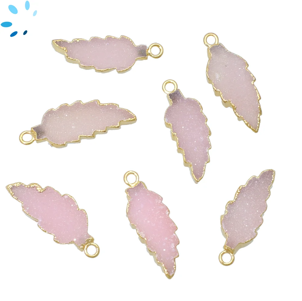 9. Pink Druzy Leaf Charm Pendant 21x12 - 24x13mm 18k Gold Electroplated - Set of 4
