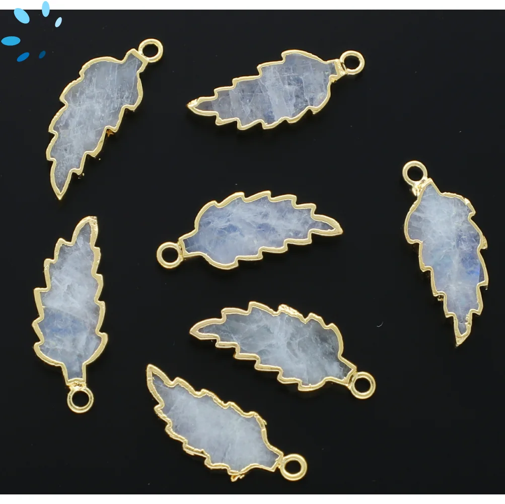 10. Rainbow Moonstone Leaf Pendant Charm 21x12 - 24x13mm 18k Gold Electroplated - Set of 4