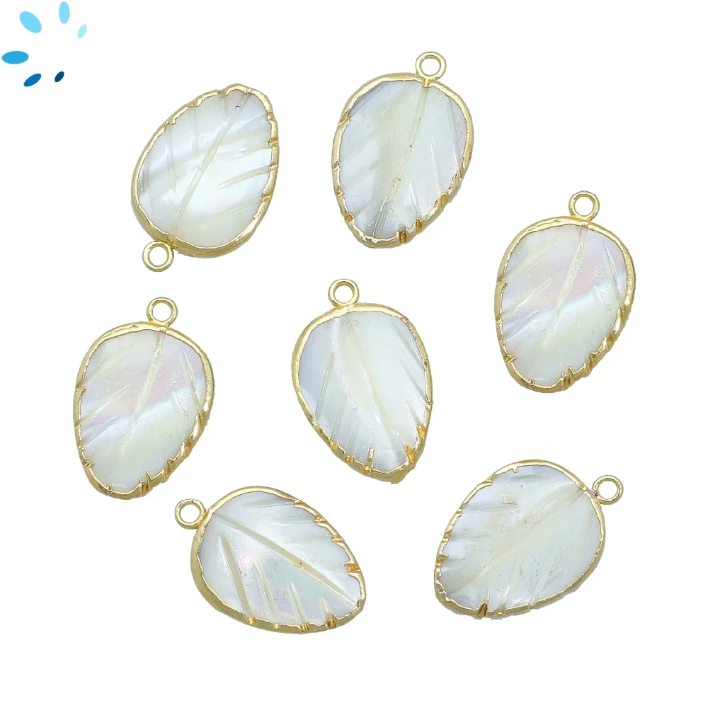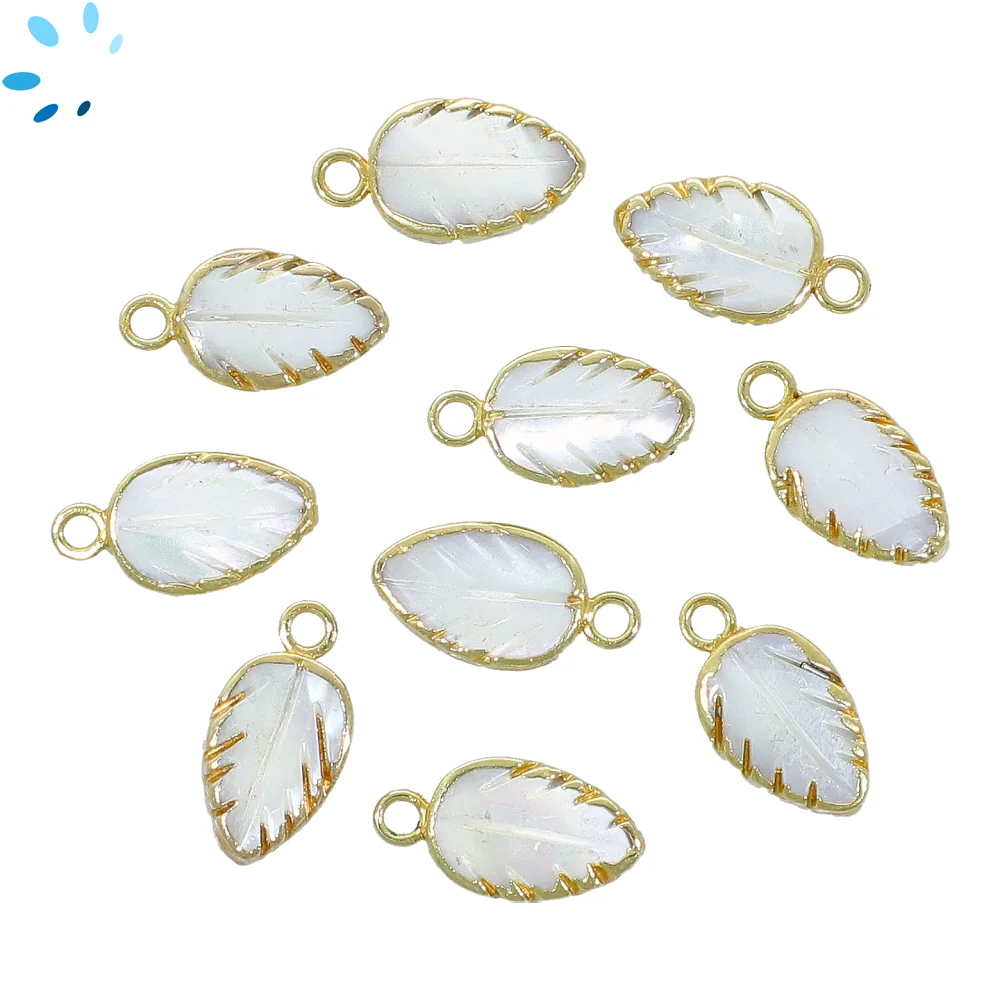 11. Mother of Pearls Leaf Pendant Charm 12x8mm 18k Gold Electroplated - Set of 4