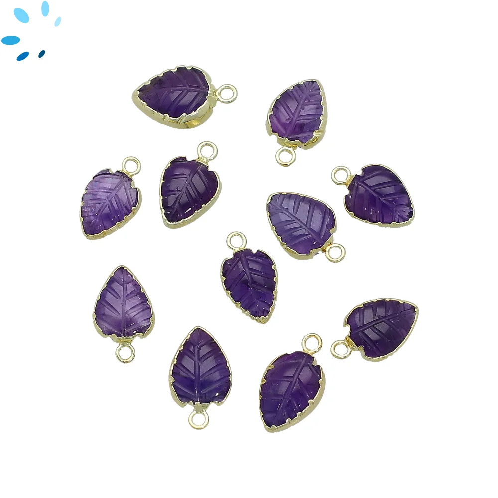 12. Amethyst Leaf Charm Pendant 10x8 - 12x9mm 18k Gold Electroplated - Set of 4