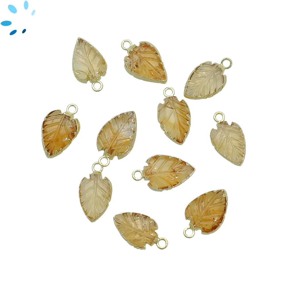 14. Citrine Leaf Charm Pendant 10x8 - 12x9mm 18k Gold Electroplated - Set of 4