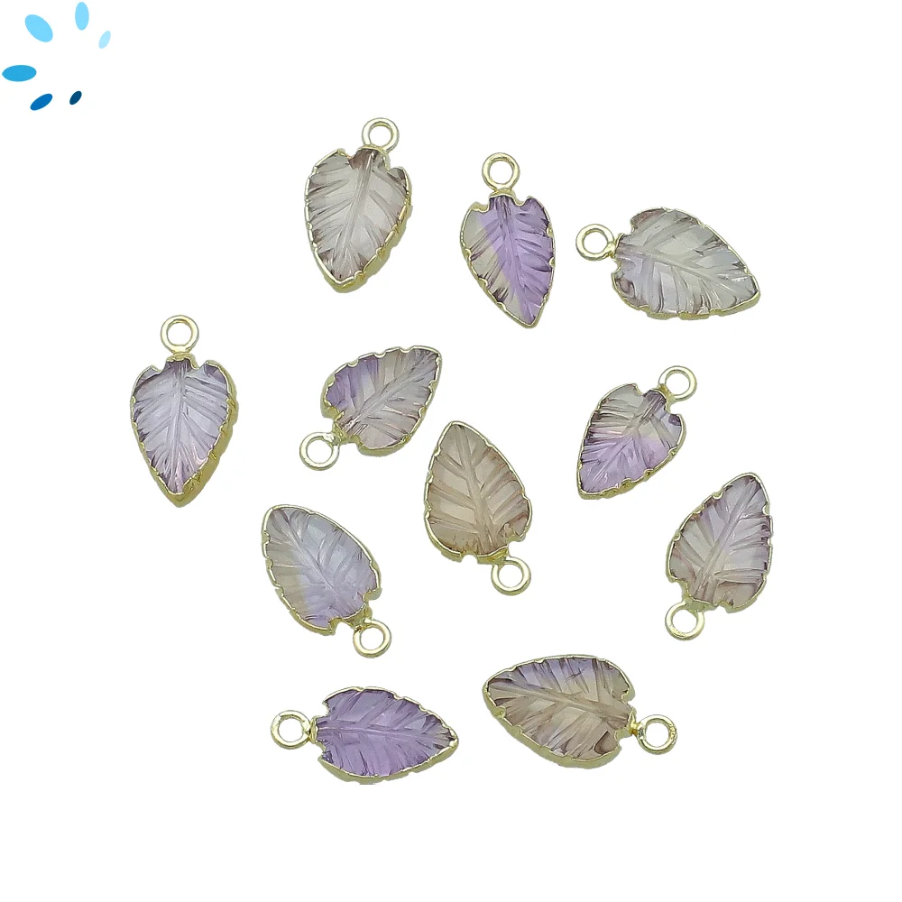 15. Ametrine Leaf Pendant Charm 10x8 - 12x9mm 18k Gold Electroplated - Set of 4