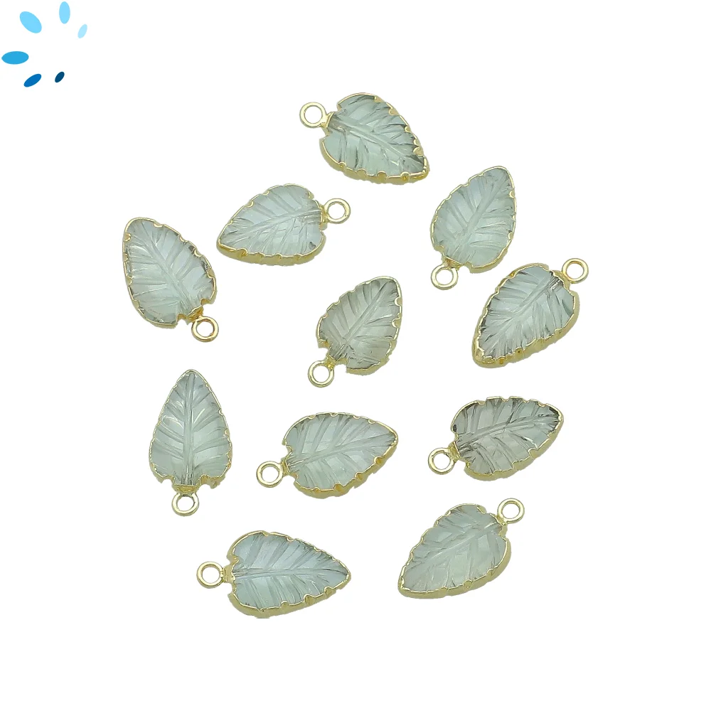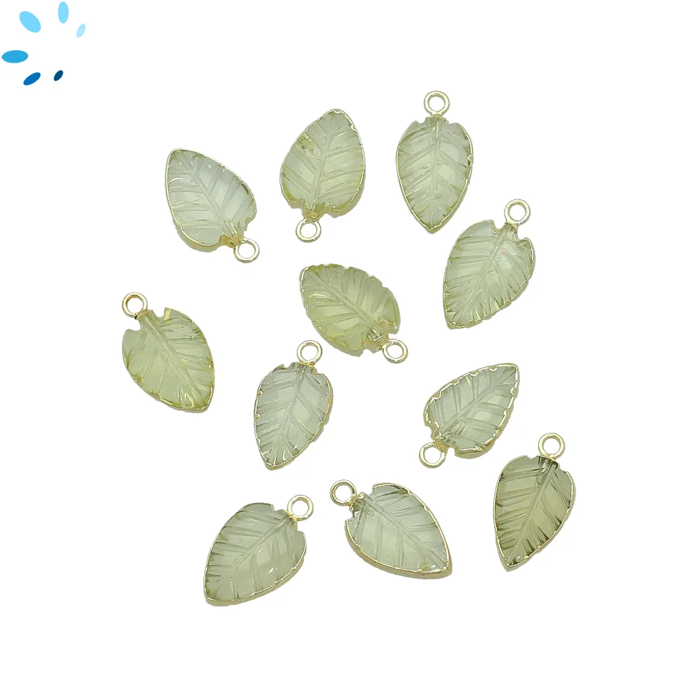 18. Green Amethyst Leaf Charm Pendant 10x8 - 12x9mm 18k Gold Electroplated - Set of 4