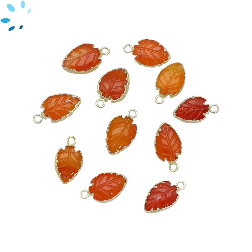 19. Carnelian Leaf Pendant Charm 10x8 - 12x9mm 18k Gold Electroplated - Set of 4