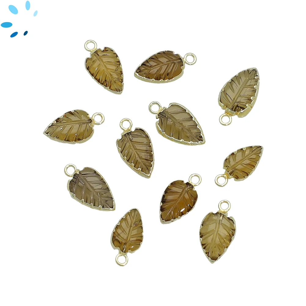 21. Whisky Quartz Leaf Pendant Charm 10x8 - 12x9mm 18k Gold Electroplated - Set of 4