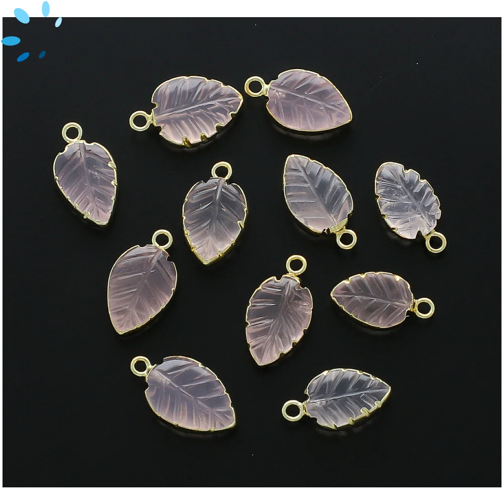 24. Rose Quartz Leaf Charm Pendant 10x8 - 12x9mm 18k Gold Electroplated - Set of 4
