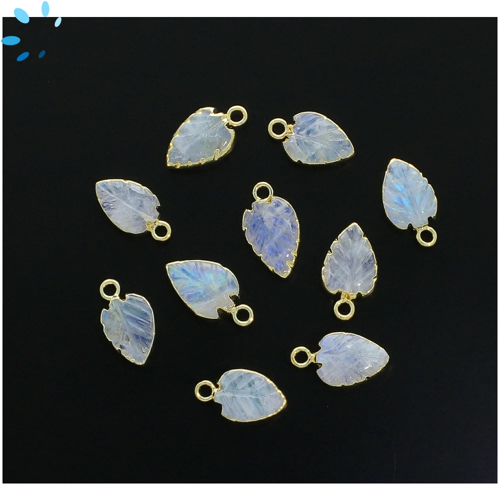 25. Rainbow Moonstone Leaf Pendant Charm 10x8 - 12x9mm 18k Gold Electroplated - Set of 4