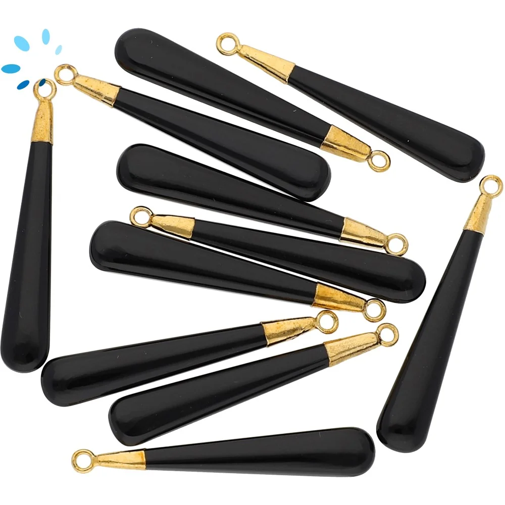 Black Onyx Long Drop Charm Pendant 39x6 - 41x6mm 18k Gold Electroplated - Set of 2