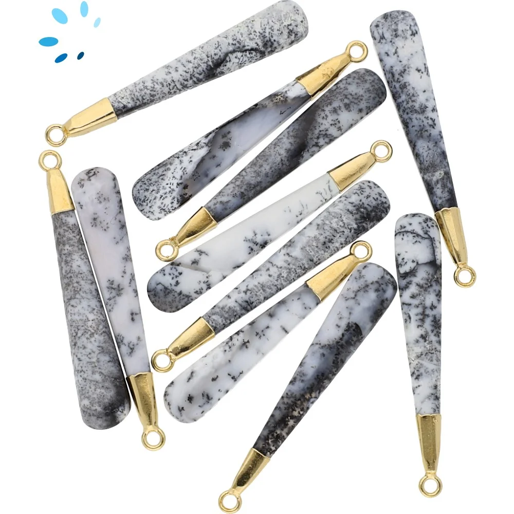 Dendrite Opal Long Drop Charm Pendant 39x6 - 41x6mm 18k Gold Electroplated - Set of 2