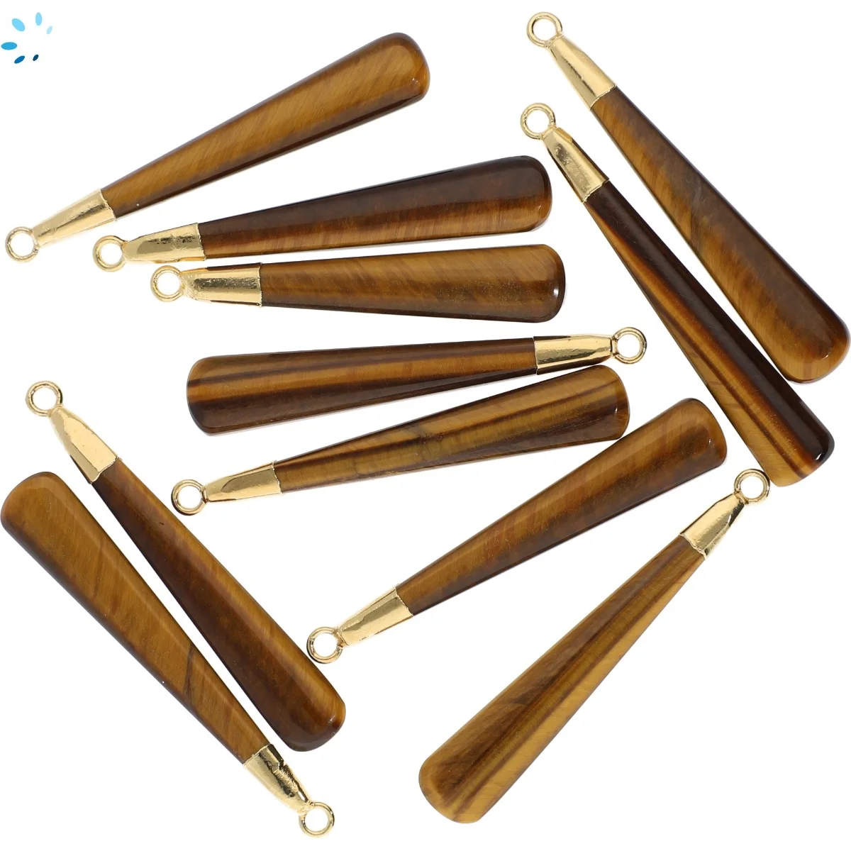 Tiger Eye Long Drop Pendant Charm 39x6 - 41x6mm 18k Gold Electroplated - Set of 2