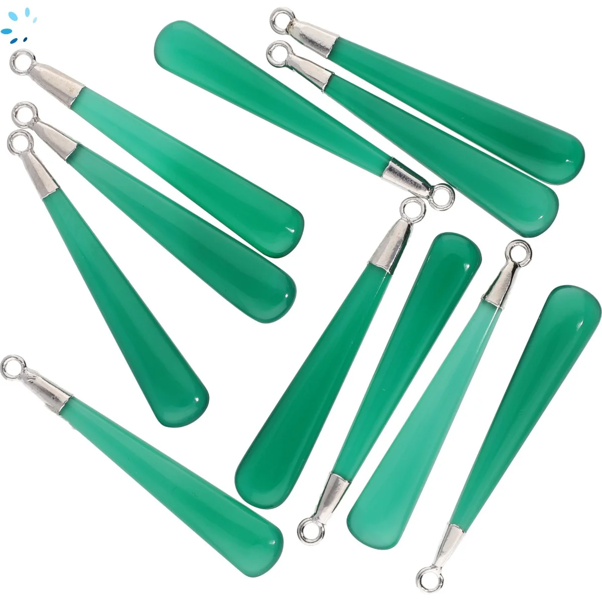 Green Onyx Long Drop Pendant Charm 39x6 - 41x6mm Platinum Electroplated - Set of 2