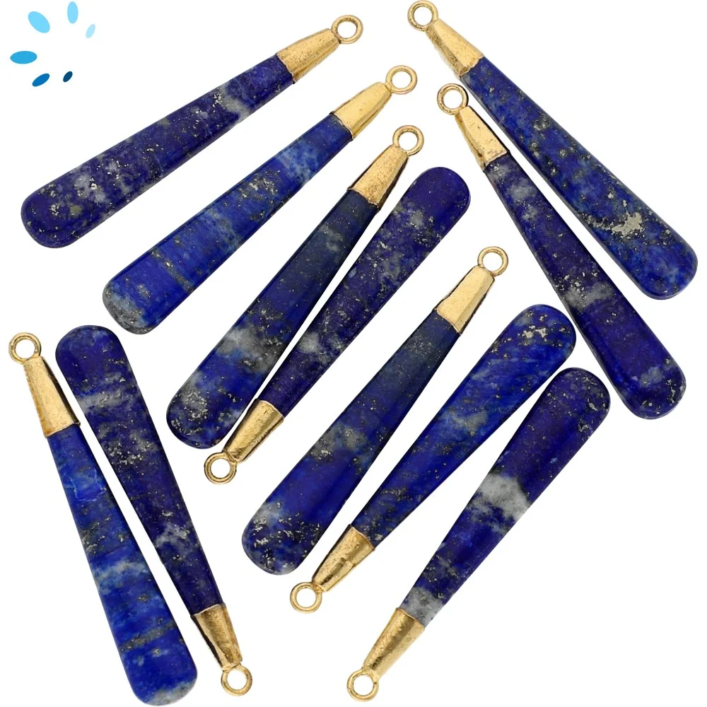 Lapis Long Drop Charm Pendant 39x6 - 41x6mm 18k Gold Electroplated - Set of 2