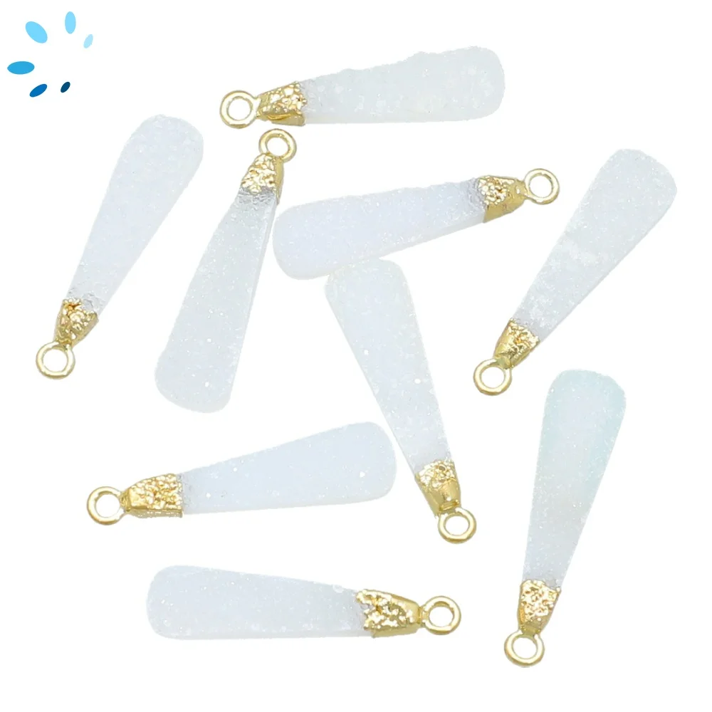 White Druzy Long Drop Charm Pendant 23x7 - 25x8mm 18k Gold Electroplated - Set of 2