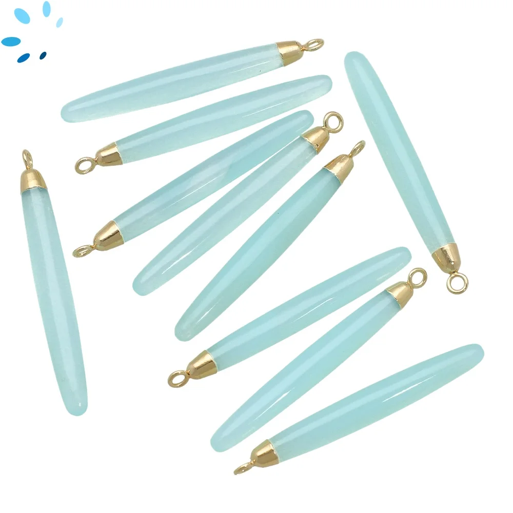 Aqua Chalcedony Long Drop Charm Pendant 39x6 - 41x6mm 18k Gold Electroplated - Set of 2
