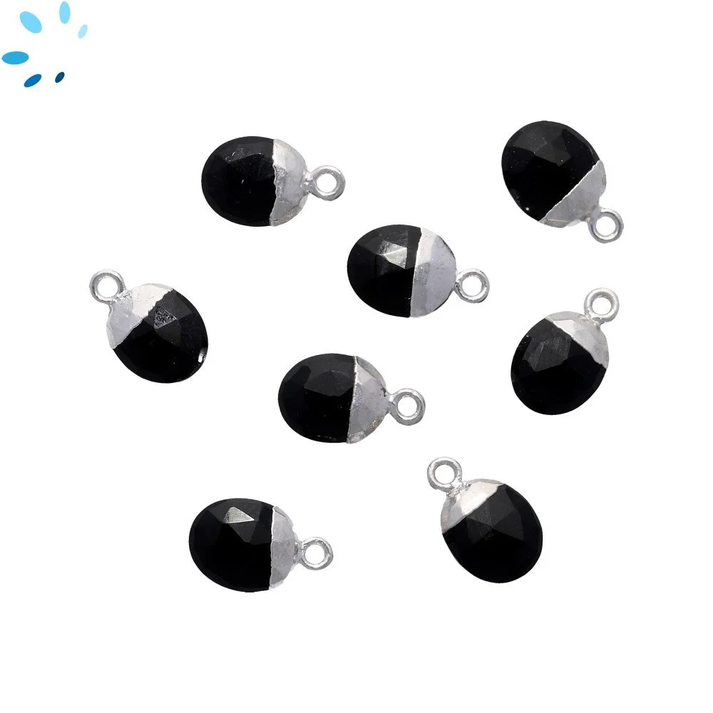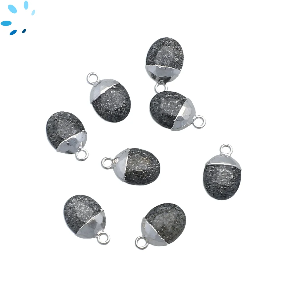 Black Sunstone Oval Pendant Charm 10x8mm Platinum Electroplated - Set of 4