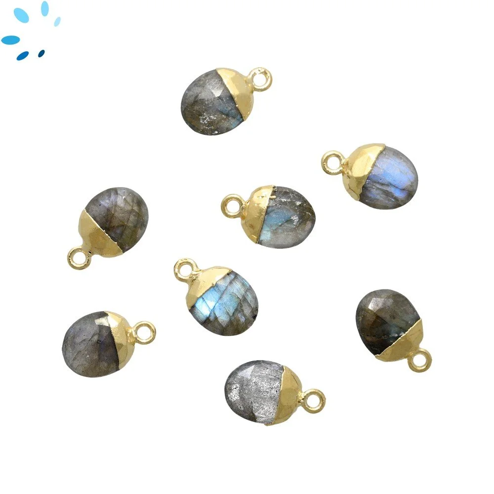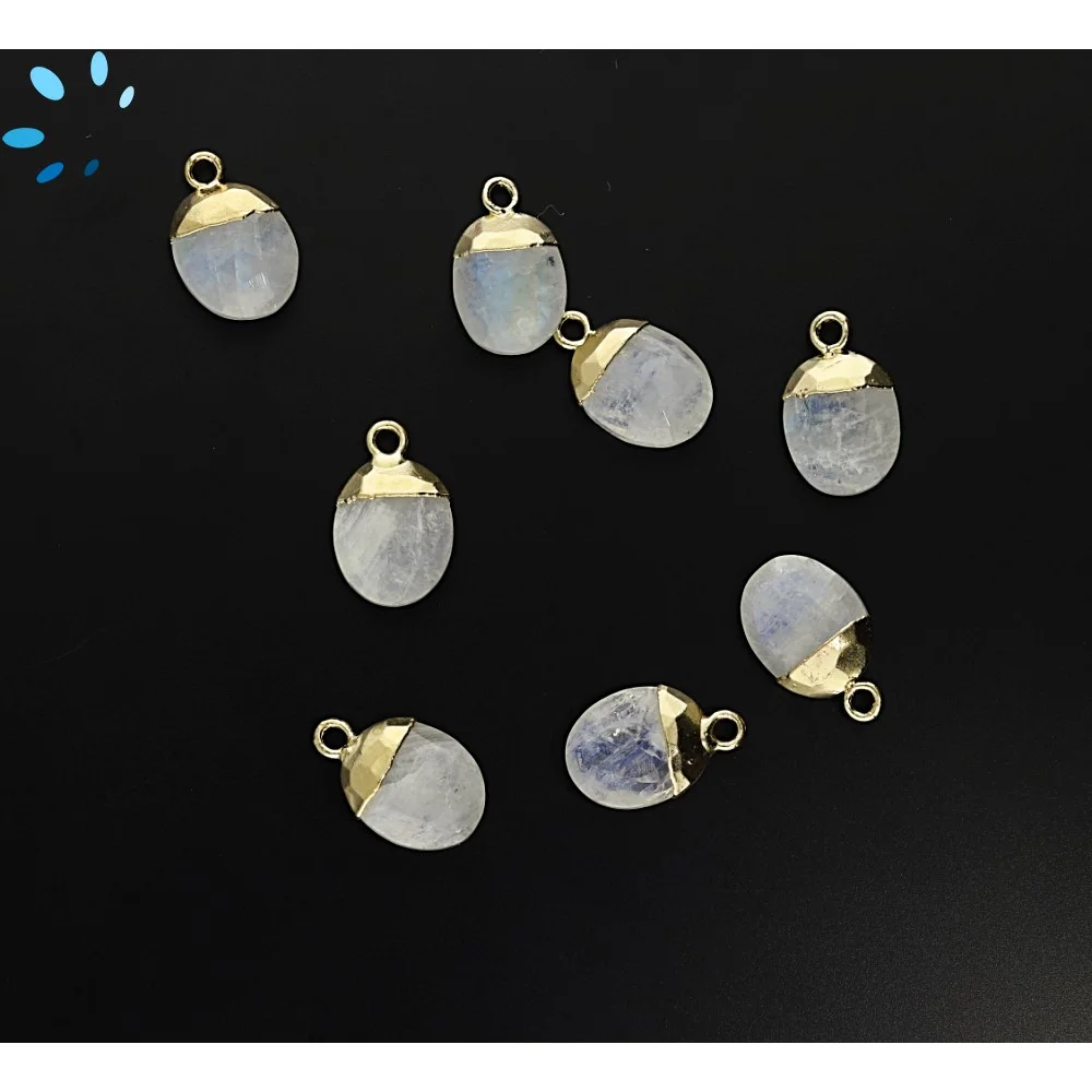 Rainbow Moonstone Oval Charm Pendant 10x8 - 12x9mm 18k Gold Electroplated - Set of 4