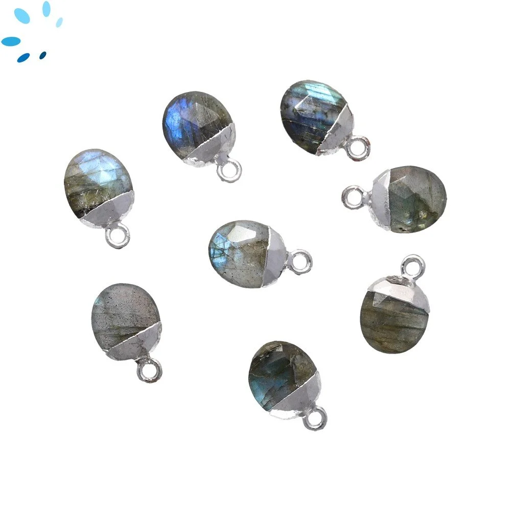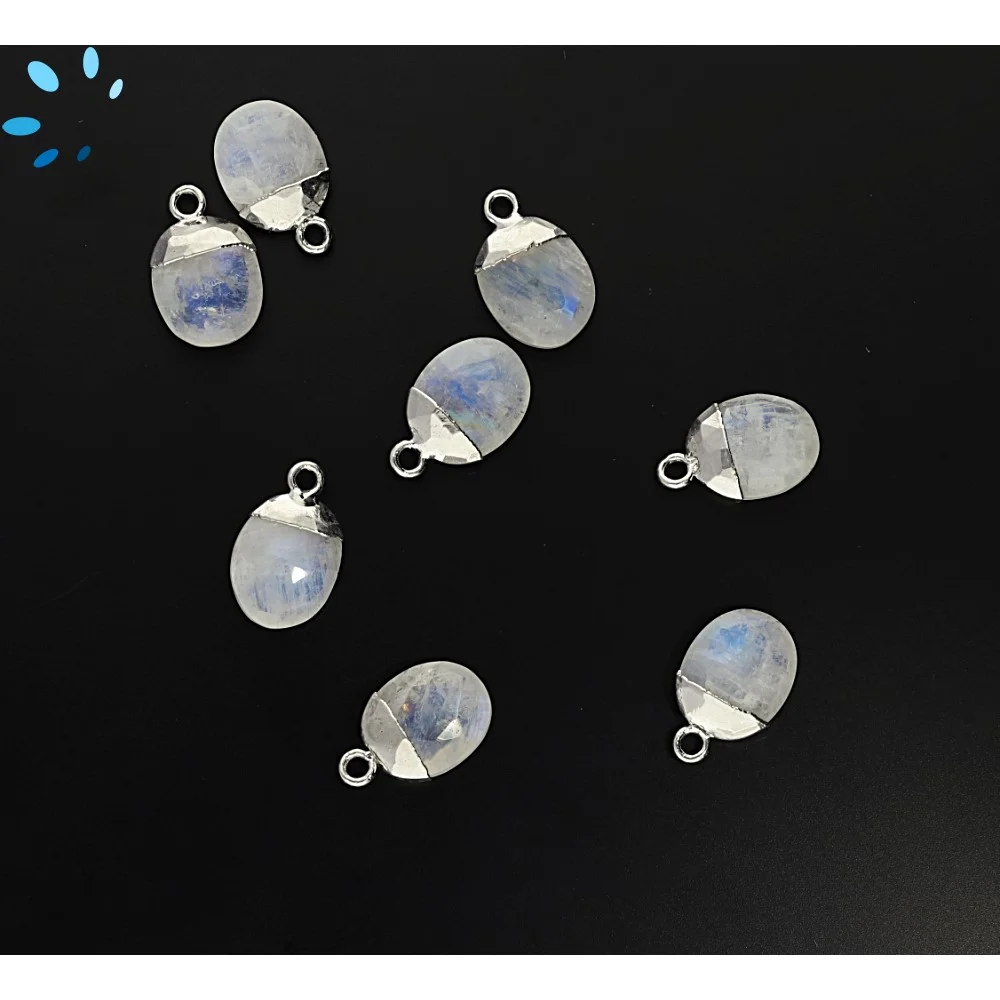 Rainbow Moonstone Oval Pendant Charm 10x8 - 12x9mm Platinum Electroplated - Set of 4