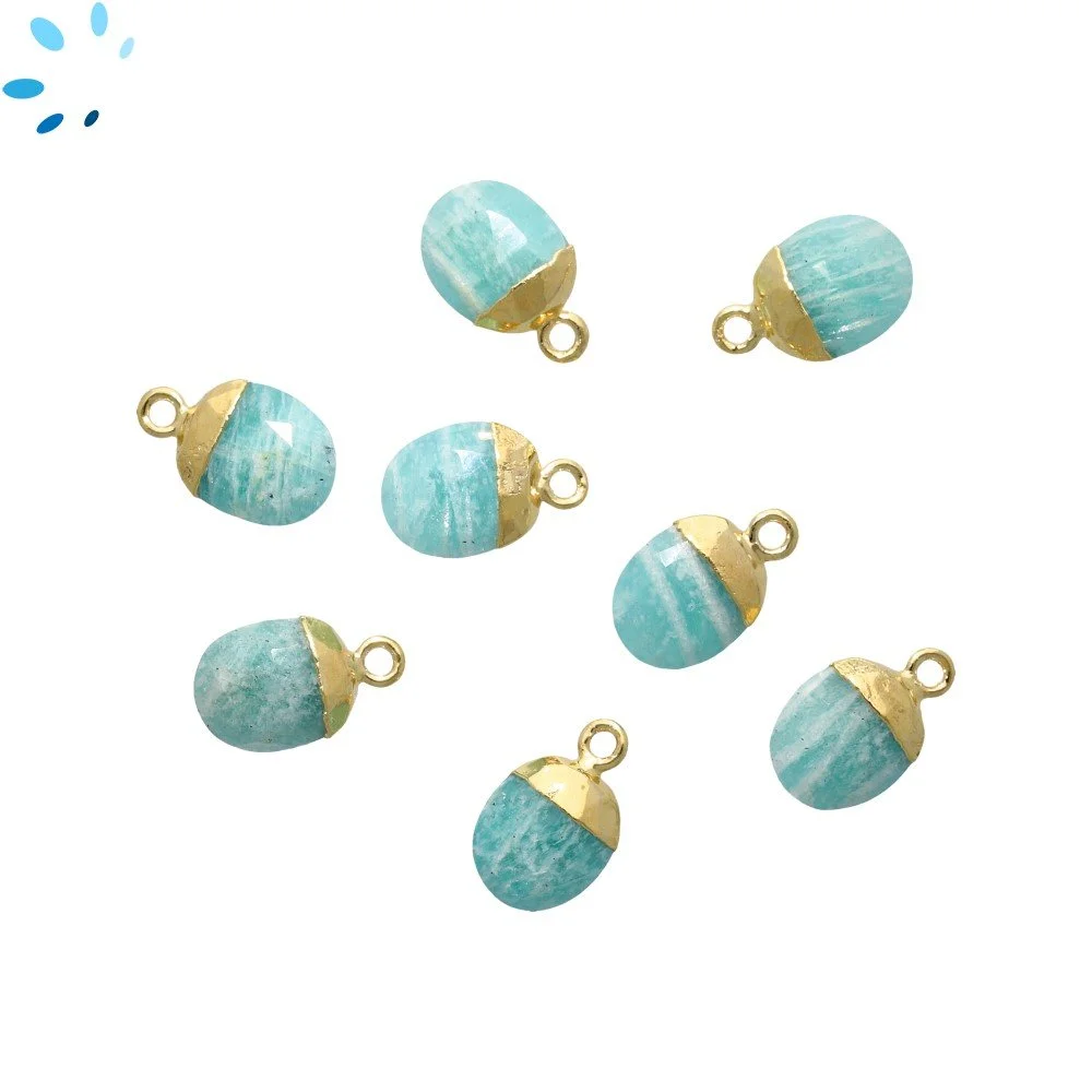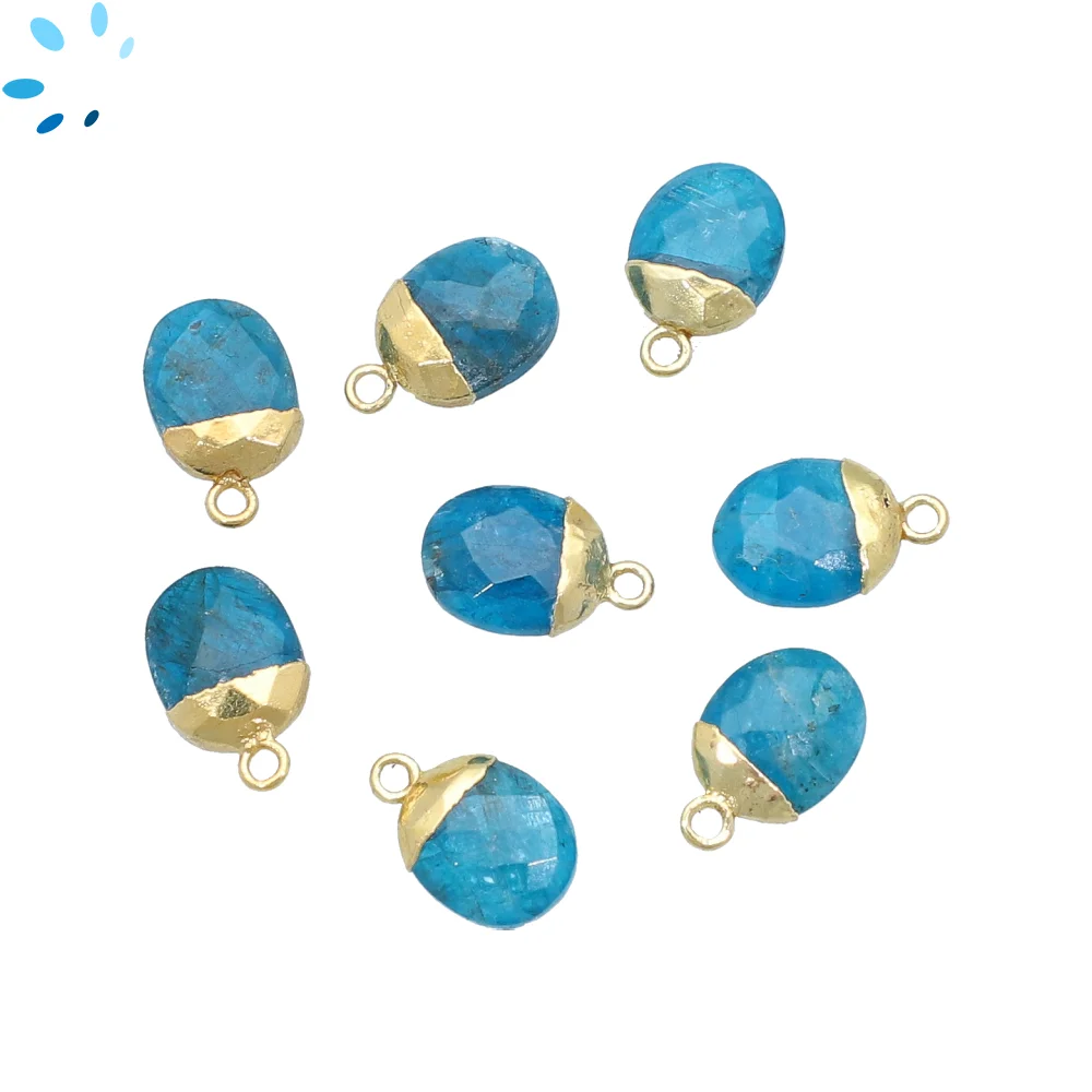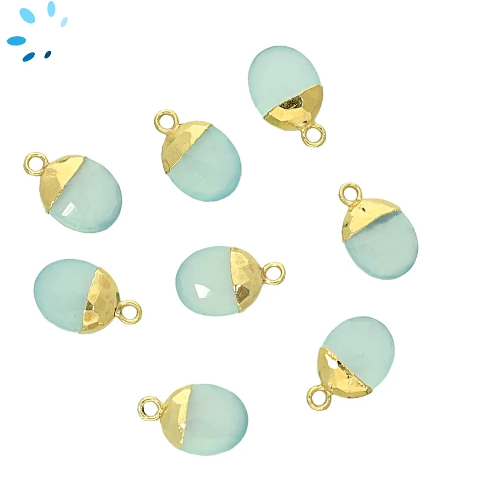 Aqua Chalcedony Oval Pendant Charm 10x8 - 12x9mm 18k Gold Electroplated - Set of 4