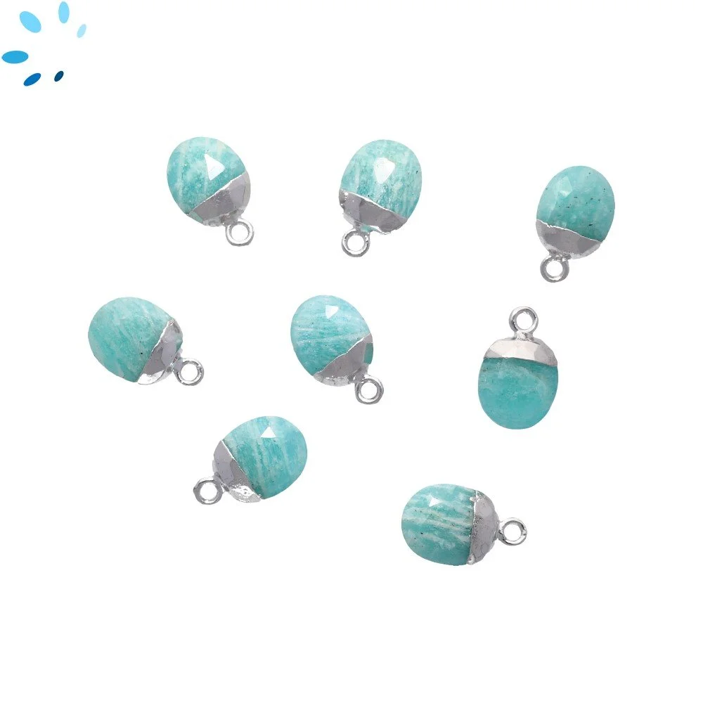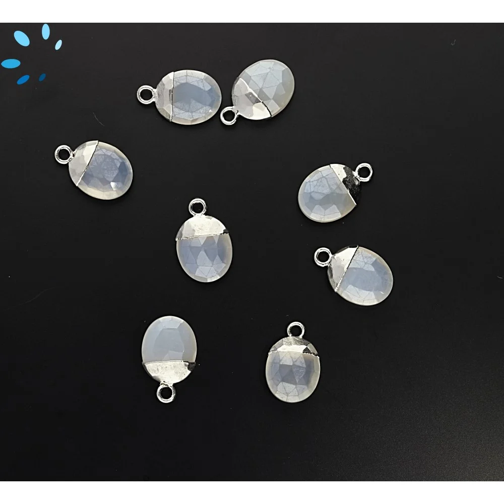Mystic White Chalcedony Oval Pendant Charm 10x8 - 12x9mm Platinum Electroplated - Set of 4