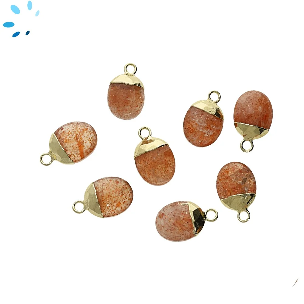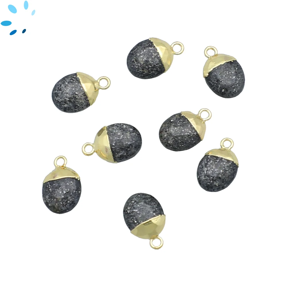 Black Sunstone Oval Charm Pendant 10x8mm 18k Gold Electroplated - Set of 4