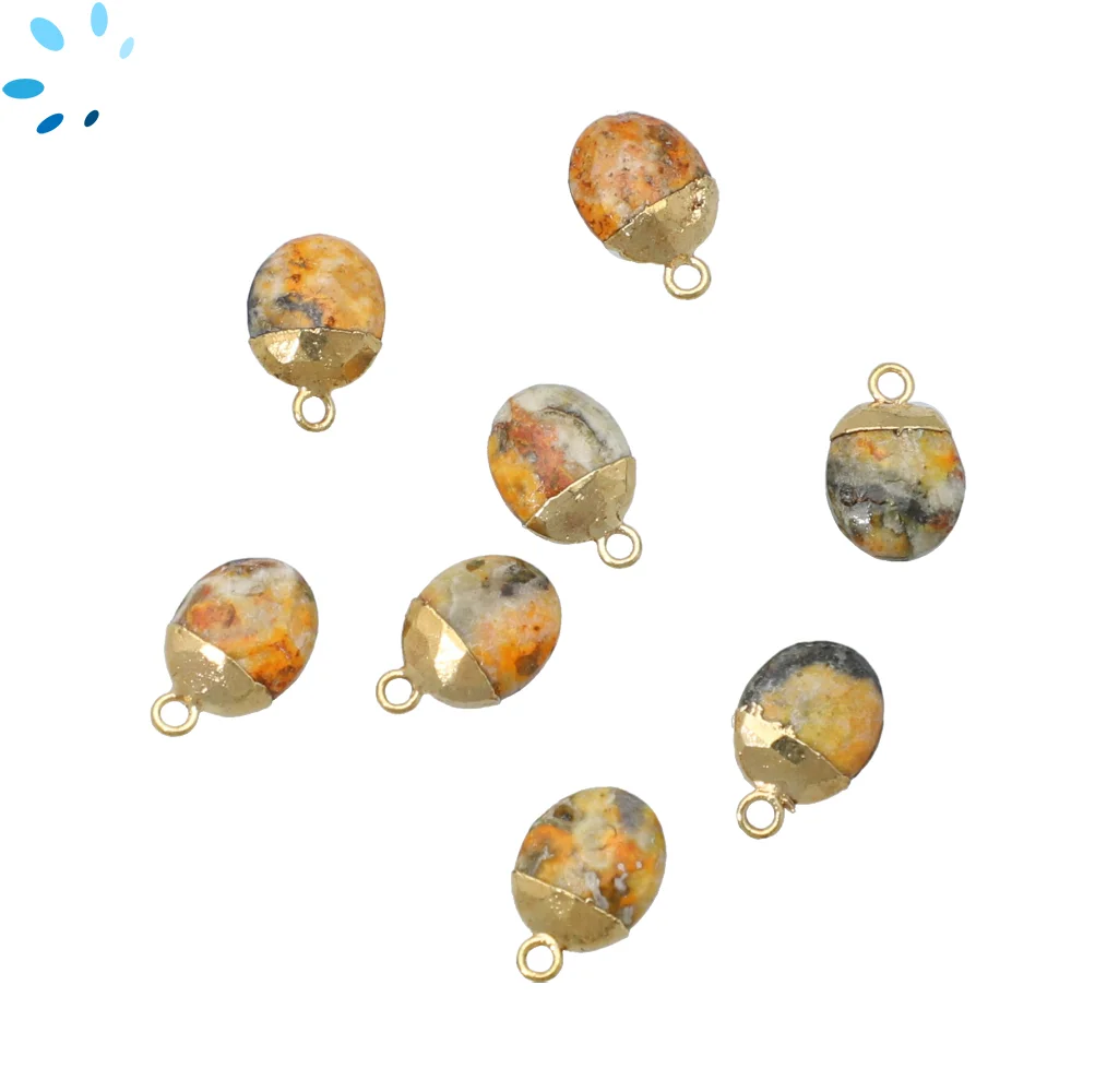 Bumblebee Jasper Oval Pendant Charm 10x8mm 18k Gold Electroplated - Set of 4