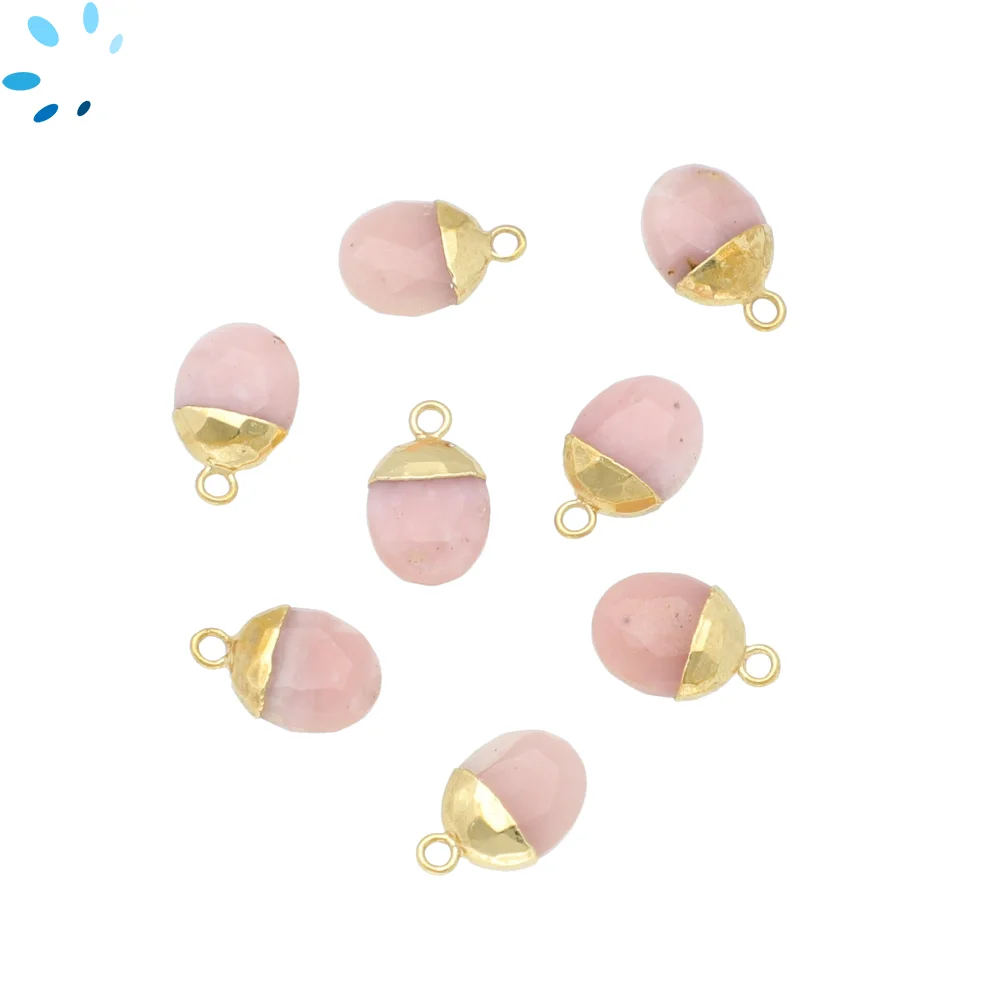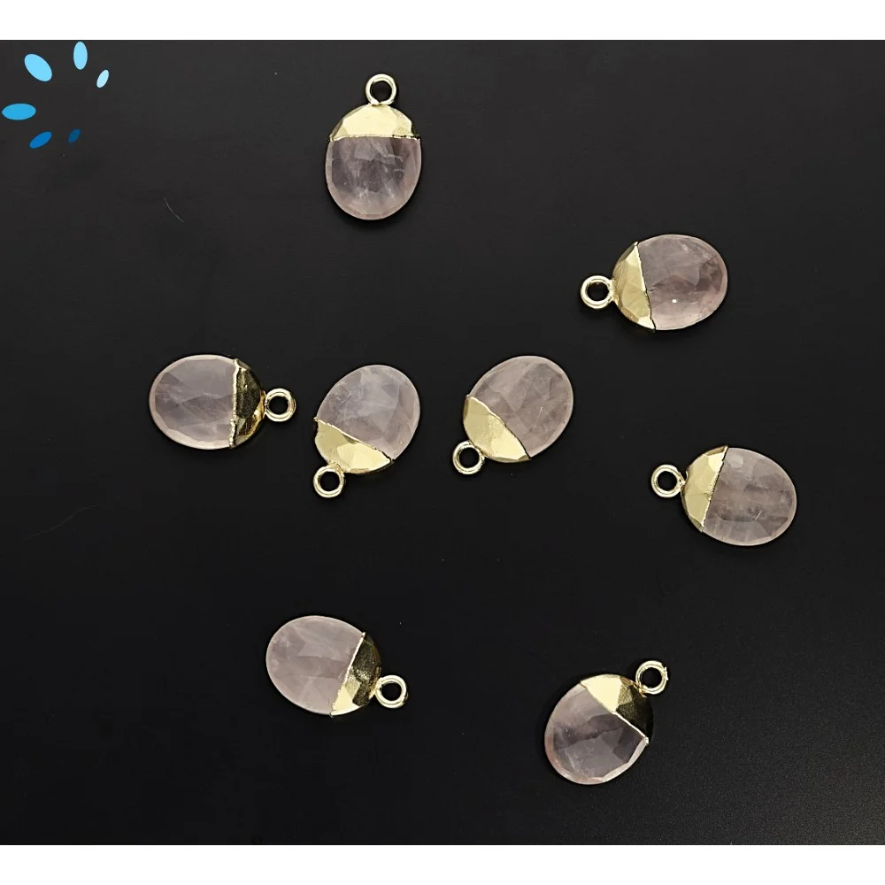 Rose Quartz Oval Pendant Charm 10x8 - 12x9mm 18k Gold Electroplated - Set of 4