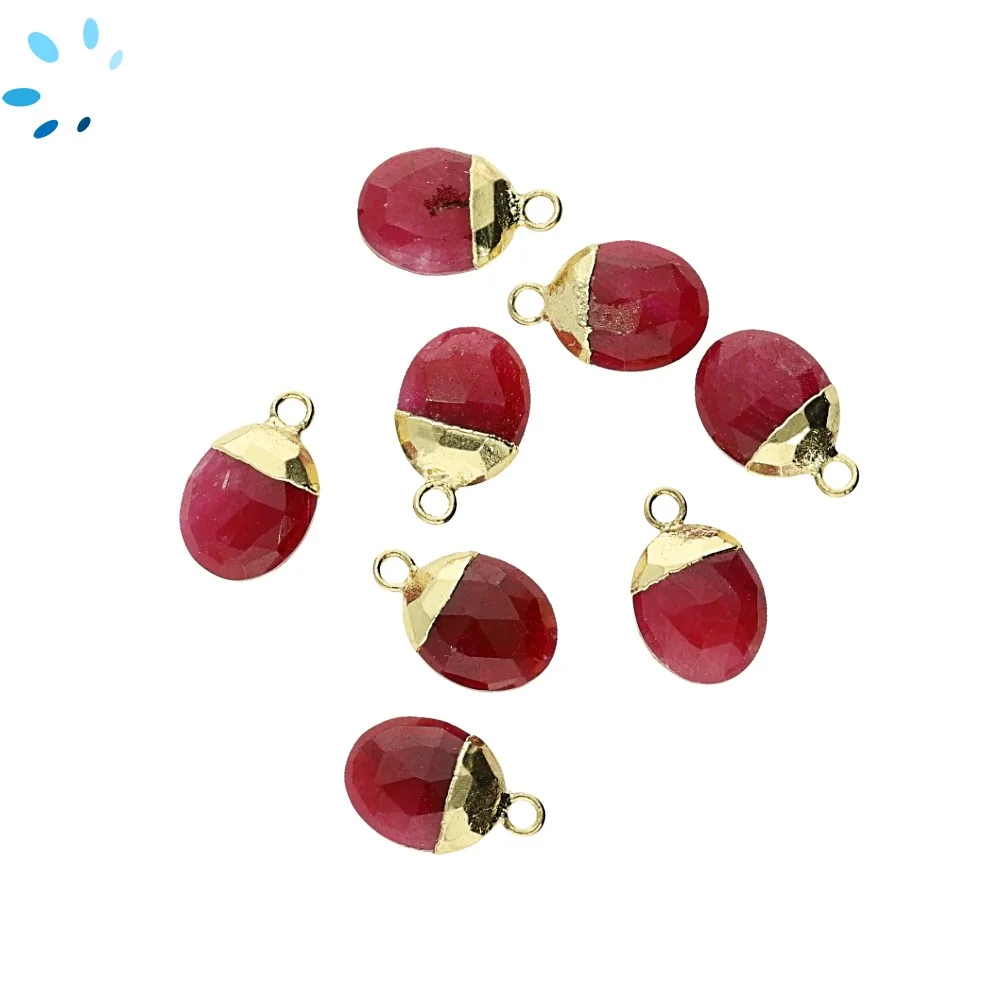 Ruby Dyed Corundum Oval Pendant Charm 10x8 - 12x9mm 18k Gold Electroplated - Set of 4