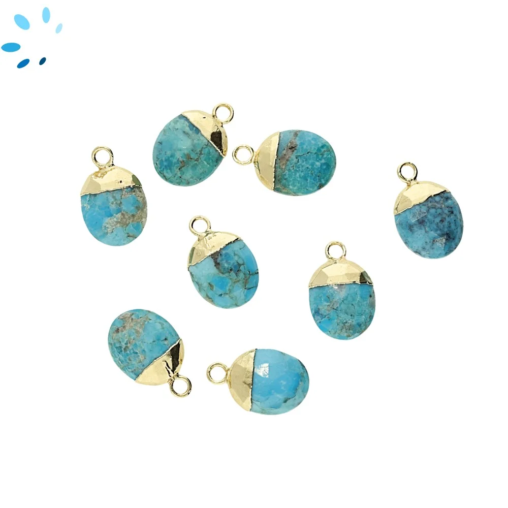 Turquoise Oval Charm Pendant 10x8 - 12x9mm 18k Gold Electroplated - Set of 4