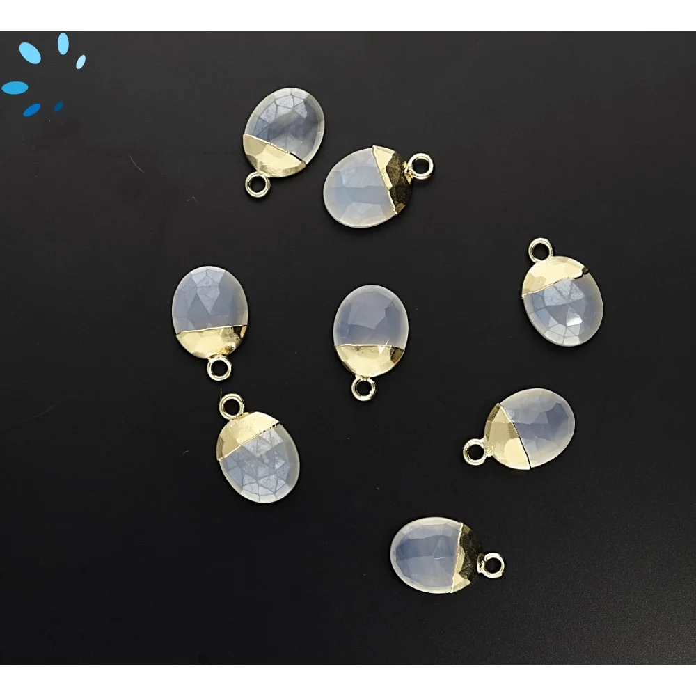 Mystic White Chalcedony Oval Charm Pendant 10x8 - 12x9mm 18k Gold Electroplated - Set of 4