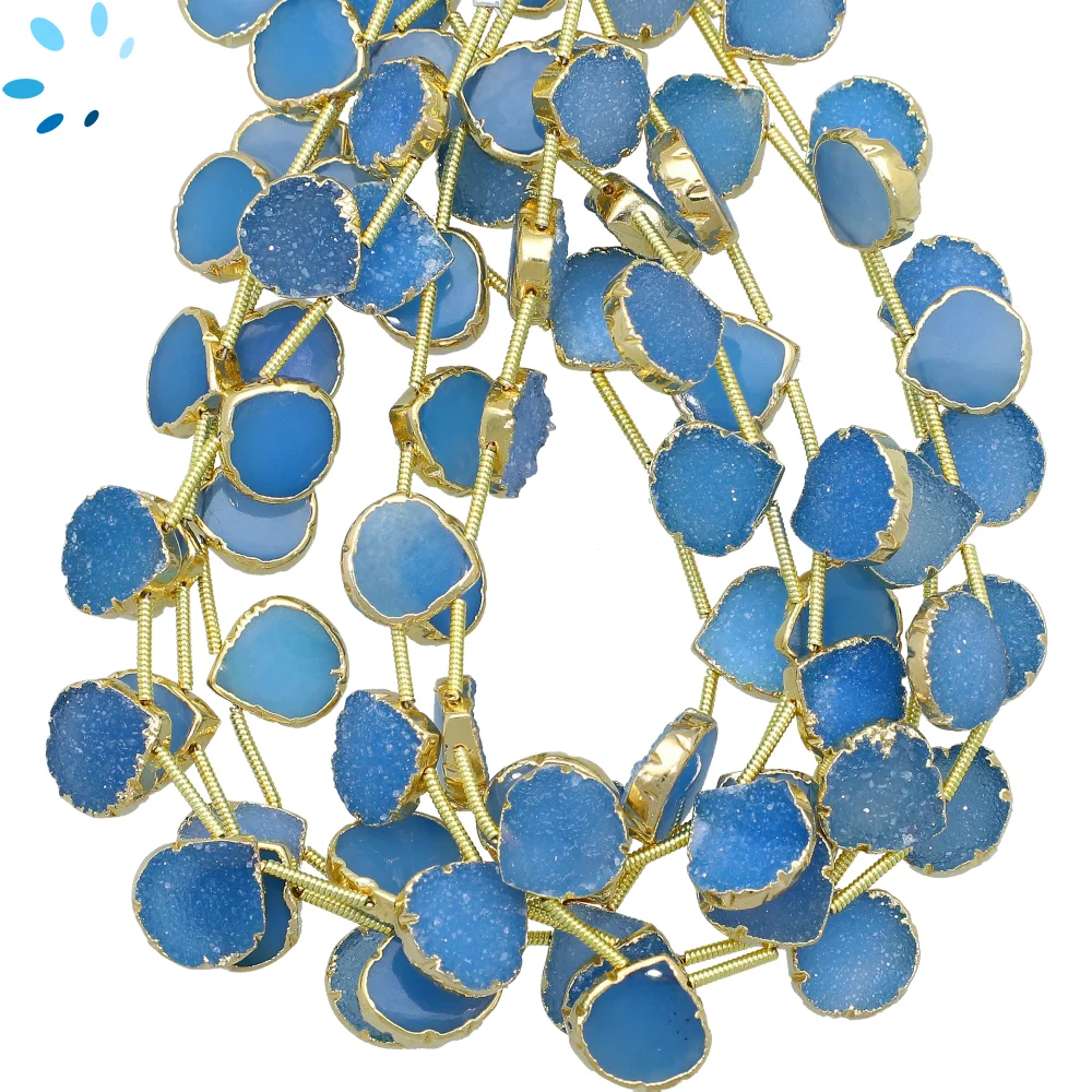 Blue Druzy Top Drilled Heart Beads 10mm - 18k Gold Electroplated