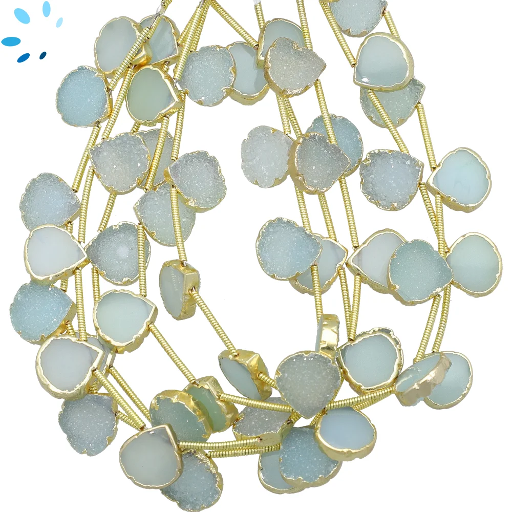 Aqua Druzy Top Drilled Heart Beads 8mm - 18k Gold Electroplated