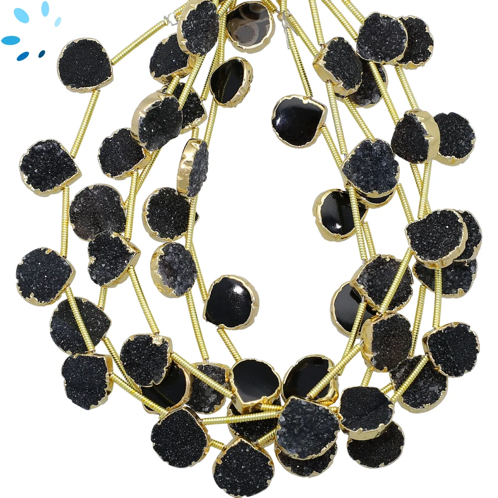 Black Druzy Top Drilled Heart Beads 10mm - 18k Gold Electroplated
