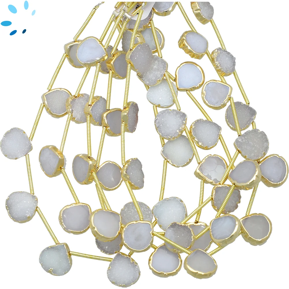 White Druzy Top Drilled Heart Beads 10mm - 18k Gold Electroplated