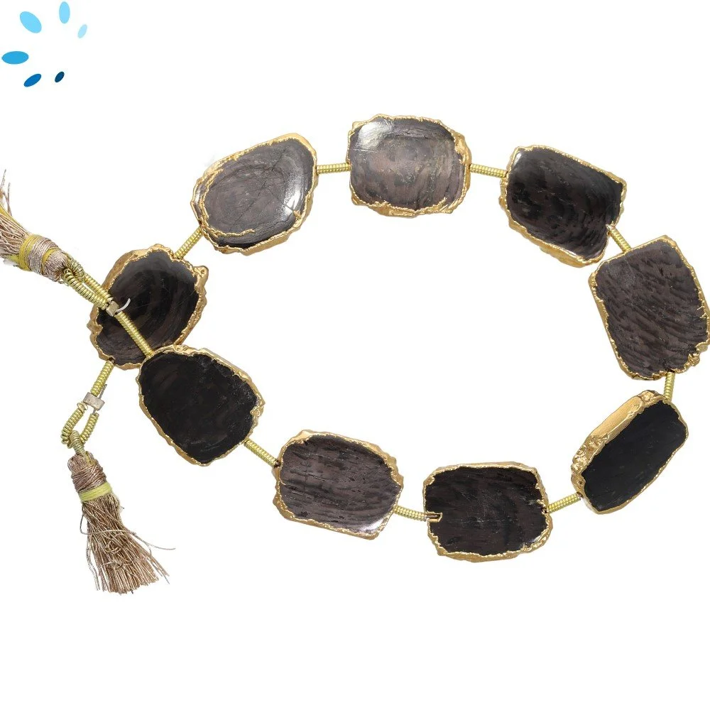 Hypersthene Top to Bottom Drilled Slice Beads 15x11 - 17x13mm - 18k Gold Electroplated