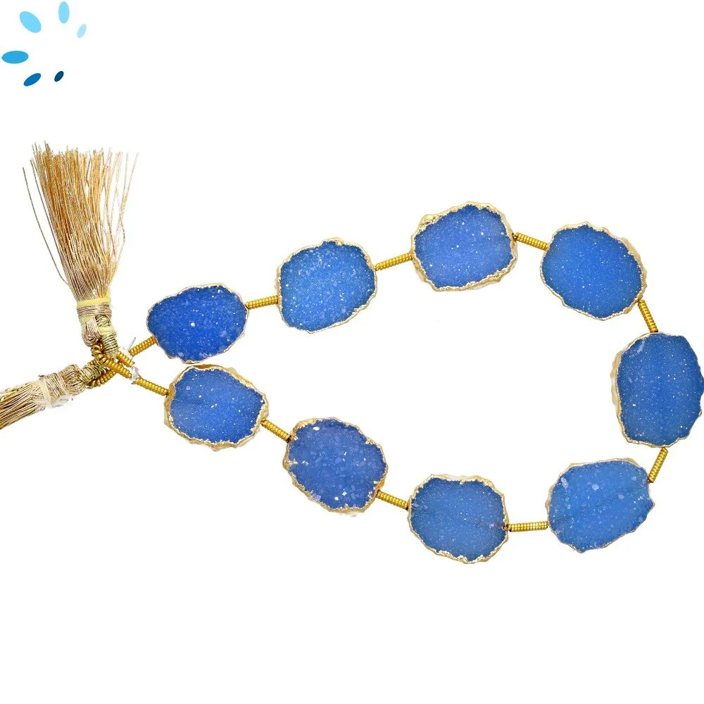 Blue Druzy Top to Bottom Drilled Slice Beads 15x12mm - 18k Gold Electroplated