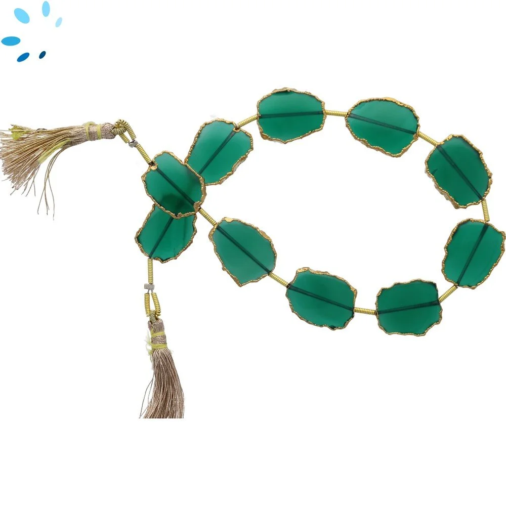 Green Onyx Top to Bottom Drilled Slice Beads 14x10 - 16x12mm - 18k Gold Electroplated