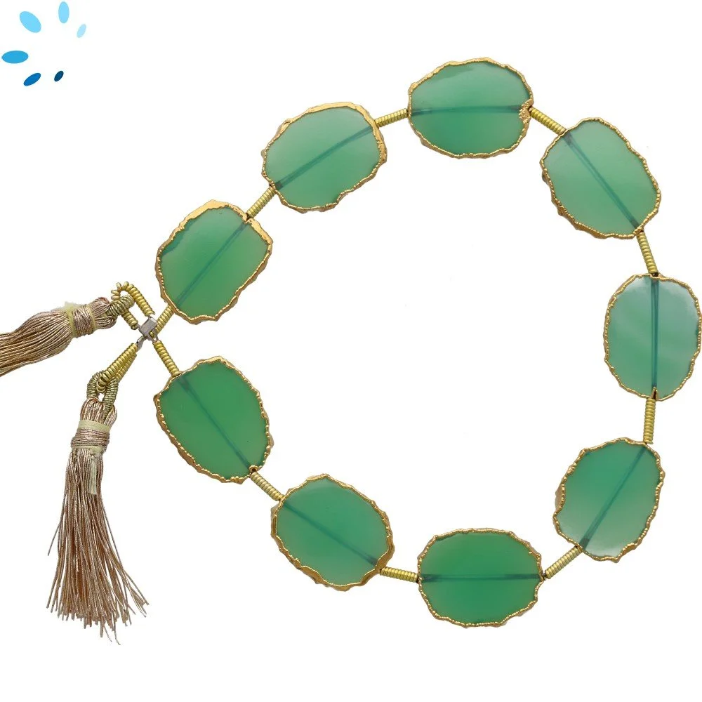Chrysoprase Chalcedony Top to Bottom Drilled Slice Beads 15x11 - 17x13mm - 18k Gold Electroplated