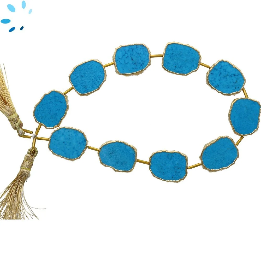 Turquoise Color Howlite Top to Bottom Drilled Slice Beads 15x11 - 17x13mm - 18k Gold Electroplated