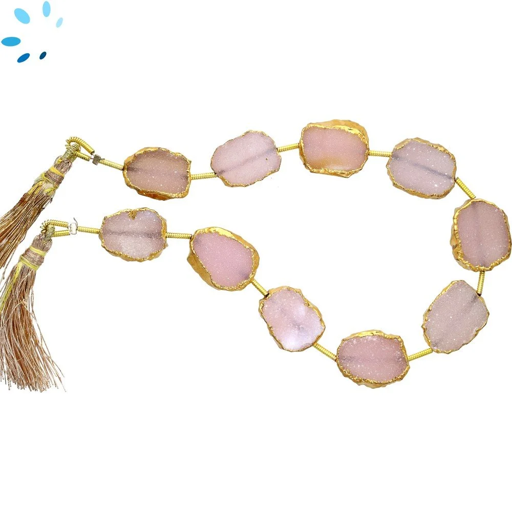 Pink Druzy Top to Bottom Drilled Slice Beads 15x11 - 17x13mm - 18k Gold Electroplated