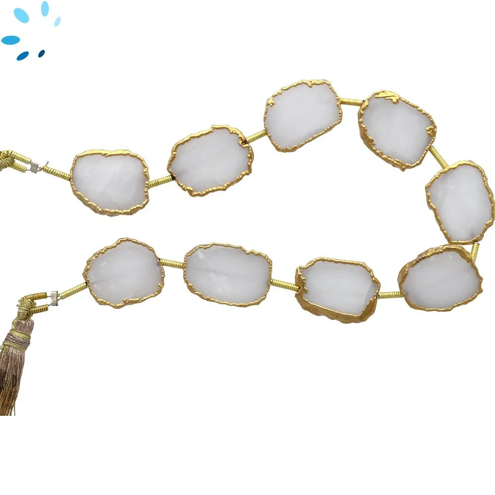 Milky Quartz Top to Bottom Drilled Slice Beads 14x10 - 16x12mm - 18k Gold Electroplated