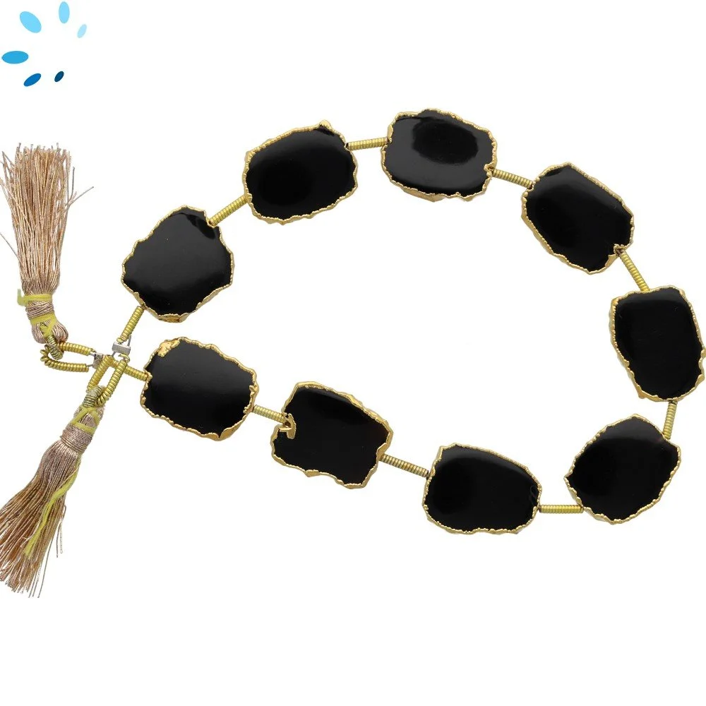 Black Onyx Top to Bottom Drilled Slice Beads 15x12mm - 18k Gold Electroplated