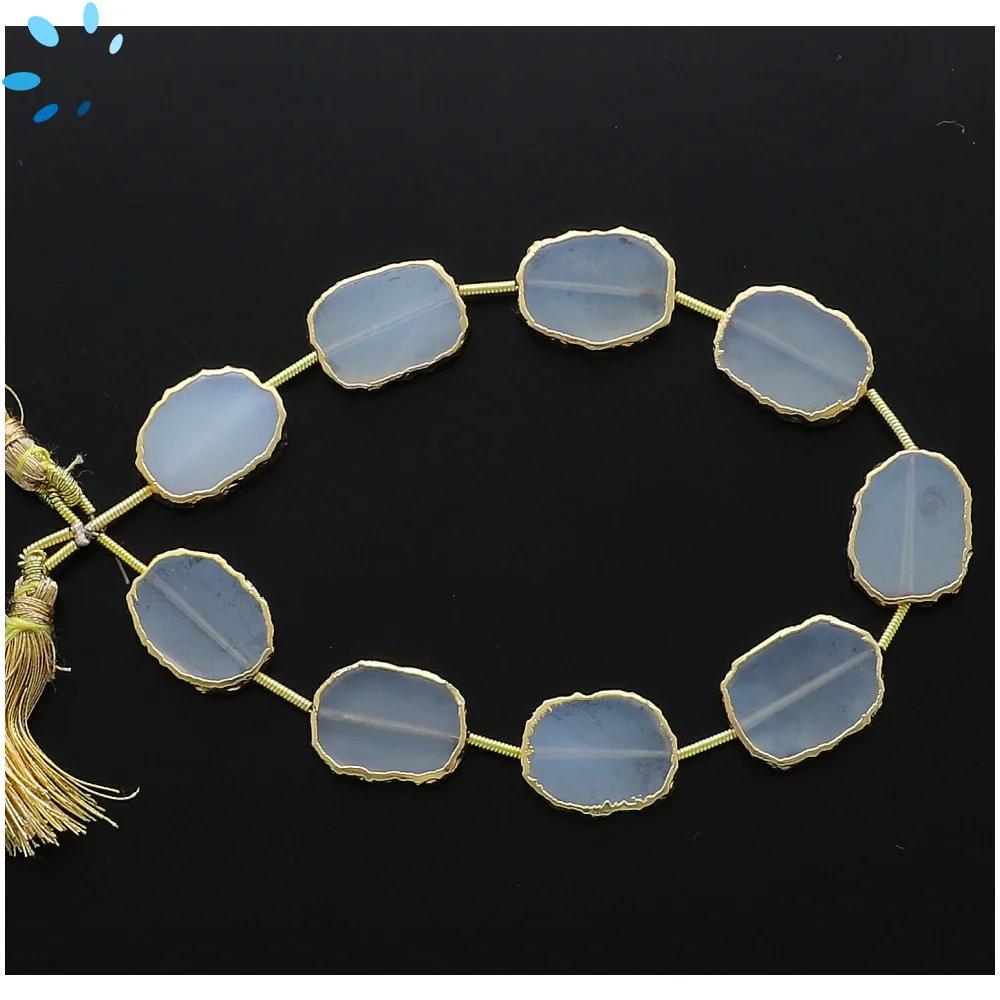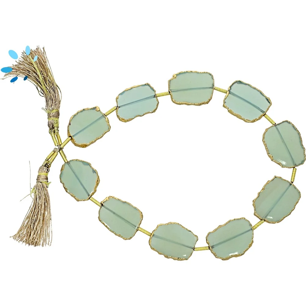 Aqua Chalcedony Top to Bottom Drilled Slice Beads 14x10 - 16x12mm - 18k Gold Electroplated